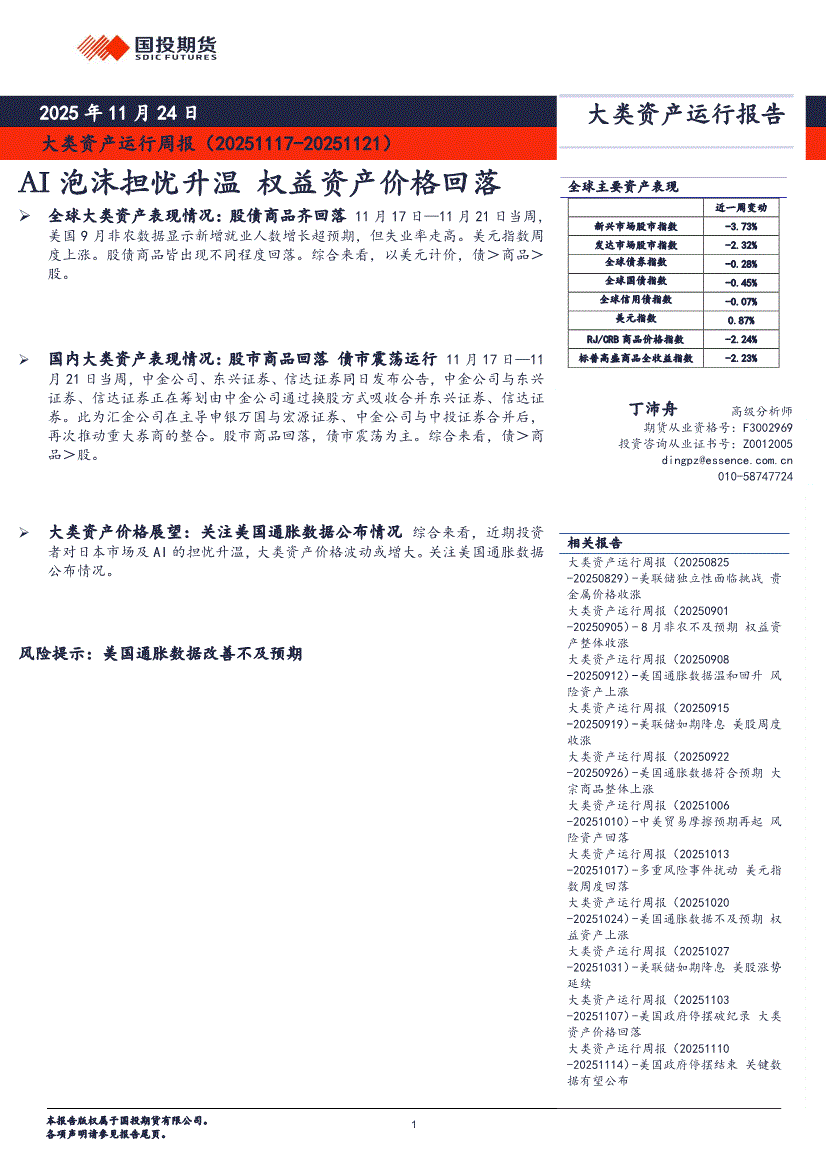 国投期货-大类资产运行周报:AI泡沫担忧升温,权益资产价格回落-251124