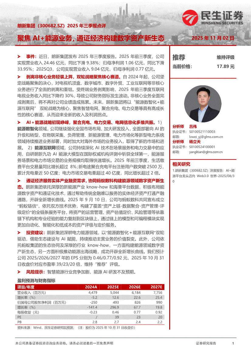 朗新集团:民生证券-朗新集团-300682-2025年三季报点评:聚焦AI+能源业务,通证经济构建数字资产新生态-251102
