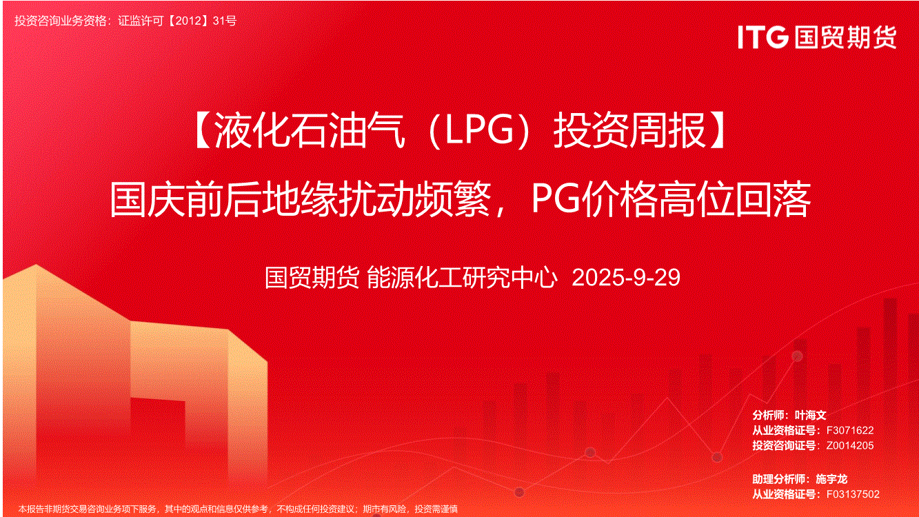 国贸期货-【液化石油气(LPG)投资周报】 国庆前后地缘扰动频繁,PG价格高位回落-250929