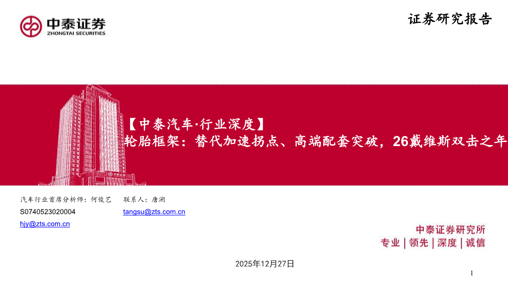 汽车行业:中泰证券-汽车行业轮胎框架:替代加速拐点、高端配套突破,26戴维斯双击之年-251227