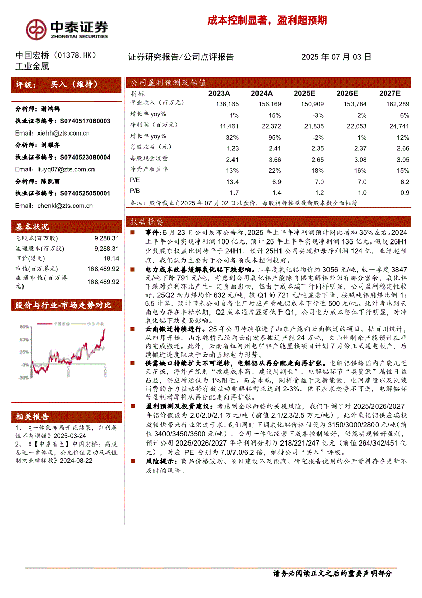 中国宏桥:中泰证券-中国宏桥-1378.HK-成本控制显著,盈利超预期-250703