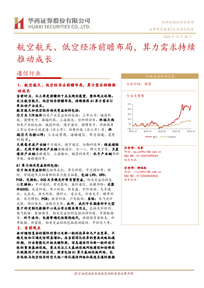 通信行业:华西证券-通信行业:航空航天、低空经济前瞻布局,算力需求持续推动成长-251026