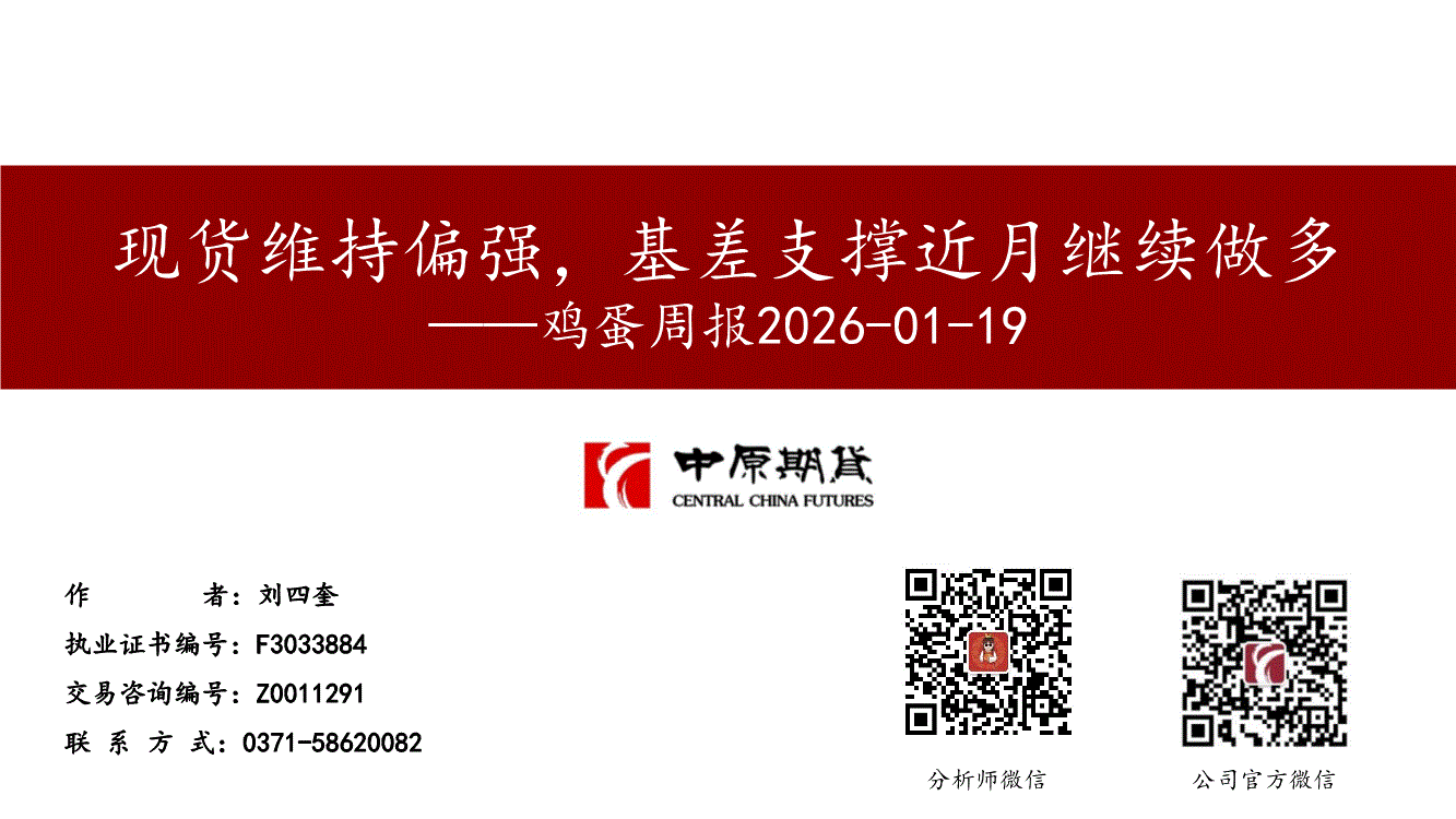 中原期货-鸡蛋周报:现货维持偏强,基差支撑近月继续做多-260119