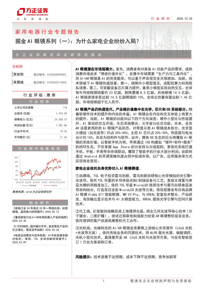 家用电器行业:方正证券-家用电器行业专题报告:掘金AI眼镜系列(一),为什么家电企业纷纷入局?-251225