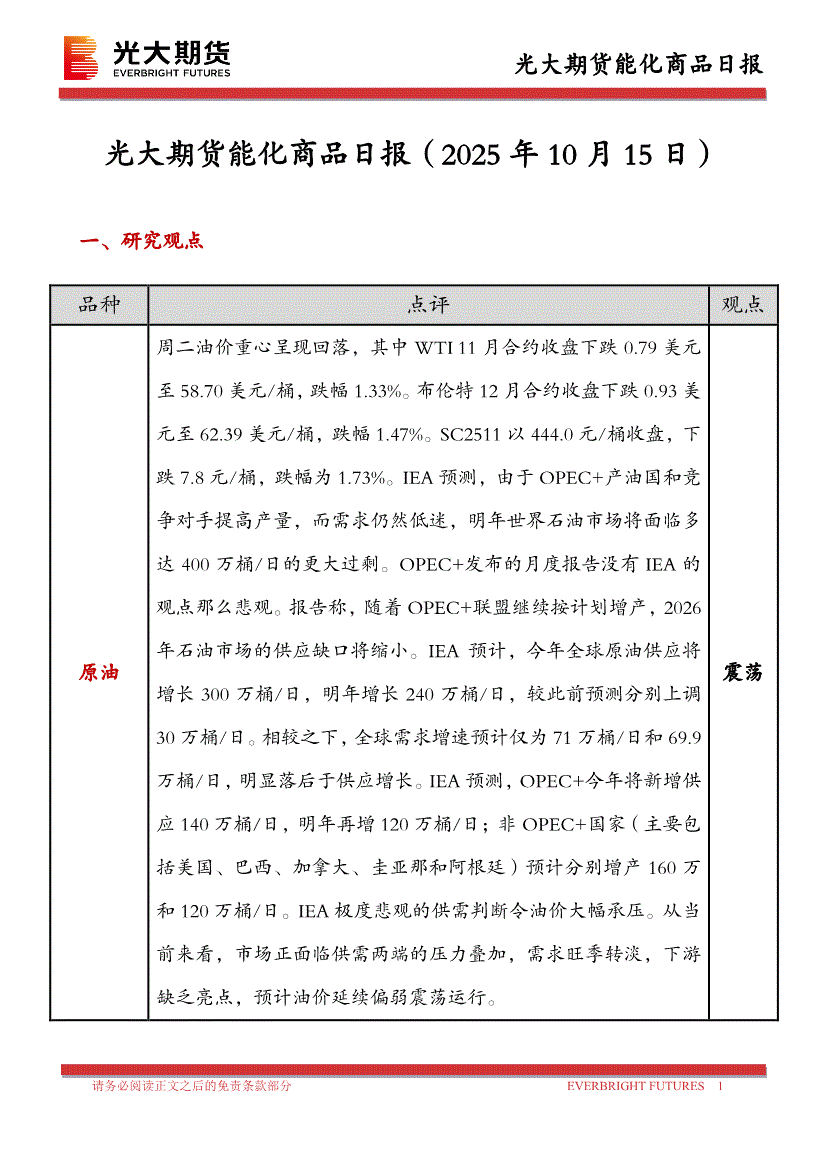 光大期货-能化商品日报-251015