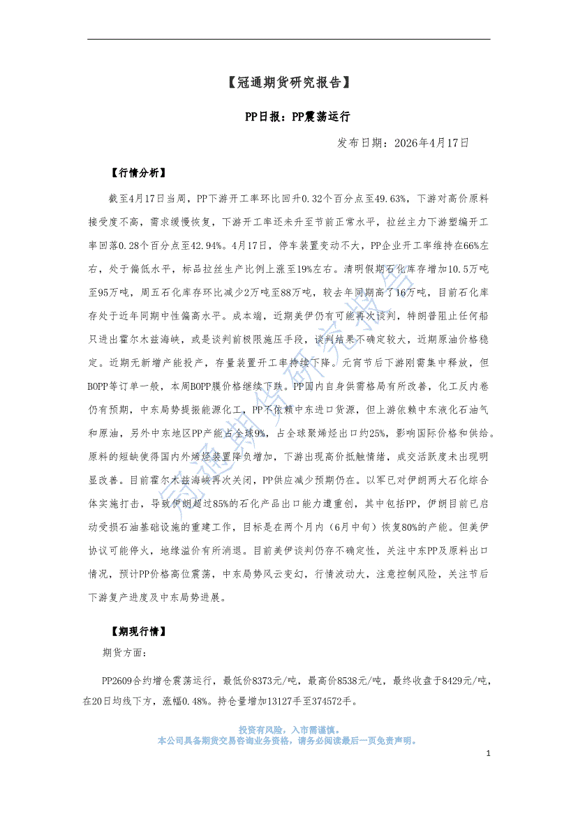 冠通期货-PP日报:PP震荡运行-260417