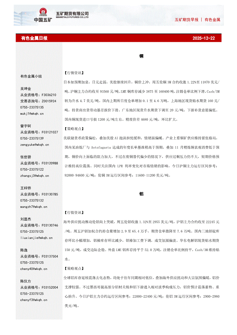 五矿期货-铝周报:宏观事件落地,铝价调整-251213
