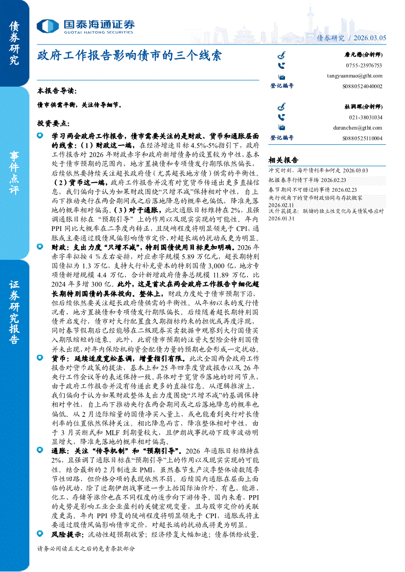 国泰海通证券-事件点评:政府工作报告影响债市的三个线索-260305