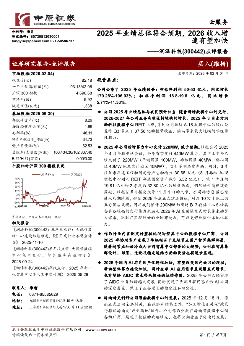 润泽科技:中原证券-润泽科技-300442-点评报告:2025年业绩总体符合预期,2026收入增速有望加快-260204