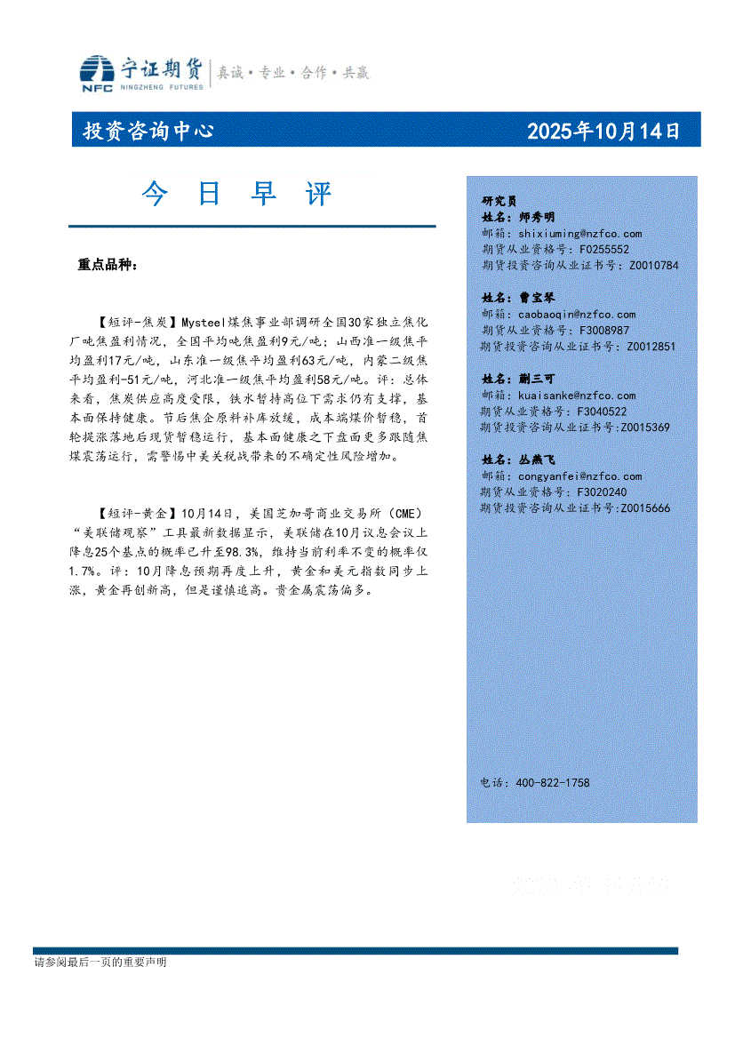 宁证期货-国债周度报告:股债跷跷板叠加避险情绪,震荡为主-251013