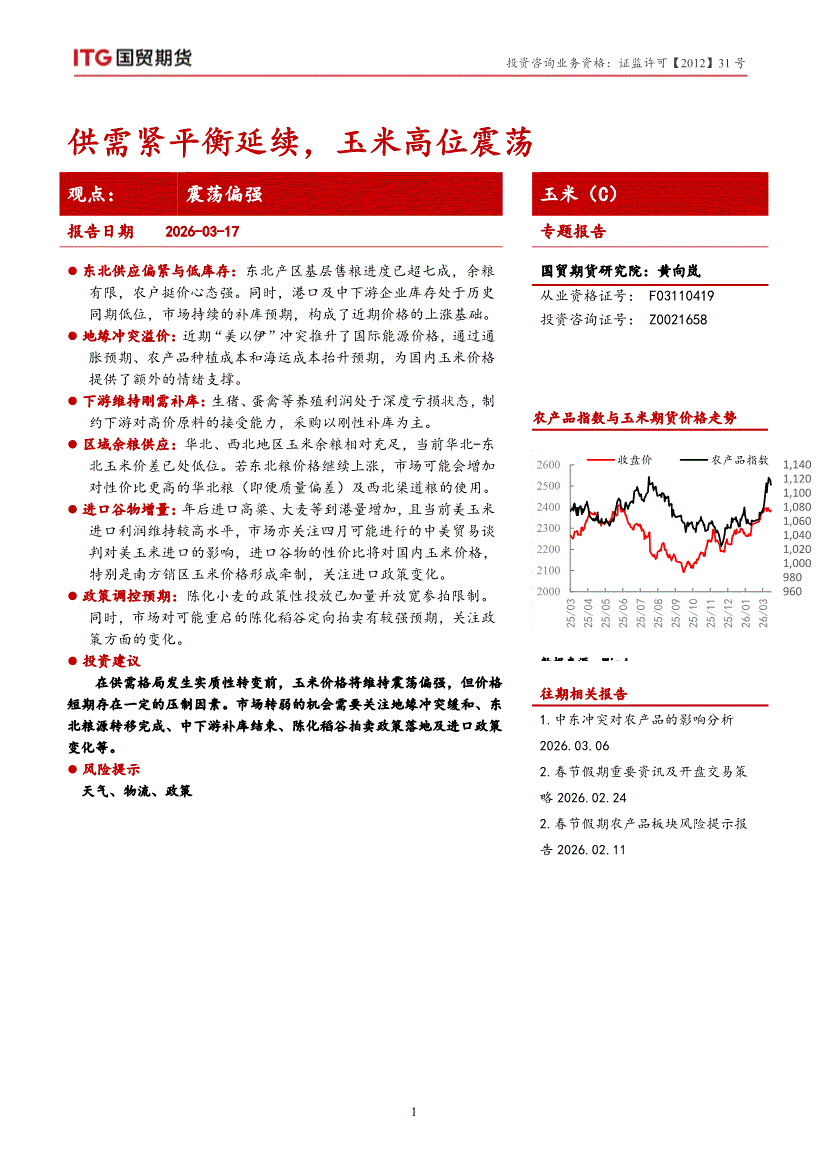 国贸期货-玉米周报:东北供应偏紧支撑盘面,关注政策与宏观扰动-260316