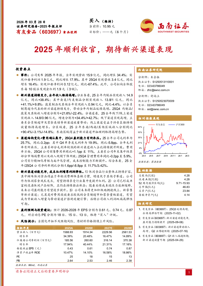 有友食品:西南证券-有友食品-603697-2025年顺利收官,期待新兴渠道表现-260328