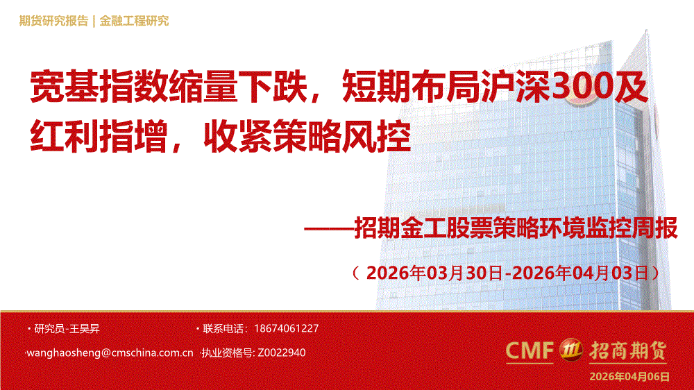 招商期货-金工股票策略环境监控周报:宽基指数缩量下跌,短期布局沪深300及红利指增,收紧策略风控-260406