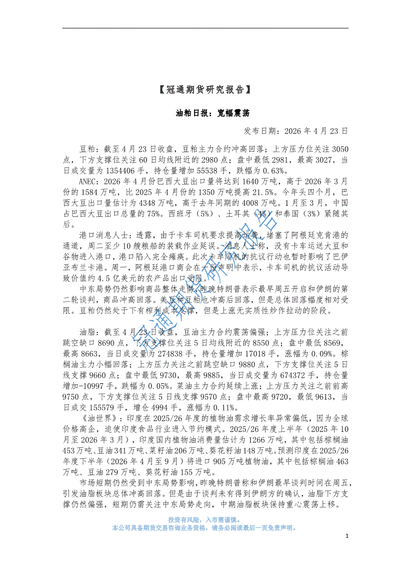 冠通期货-软商品日报:支撑较强下的宽幅震荡-260415