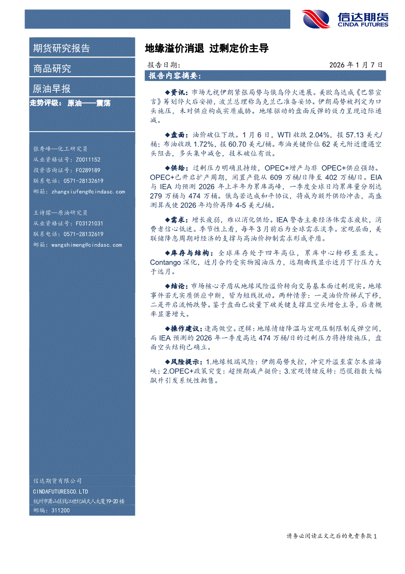 信达期货-原油早报:地缘溢价消退,过剩定价主导-260107