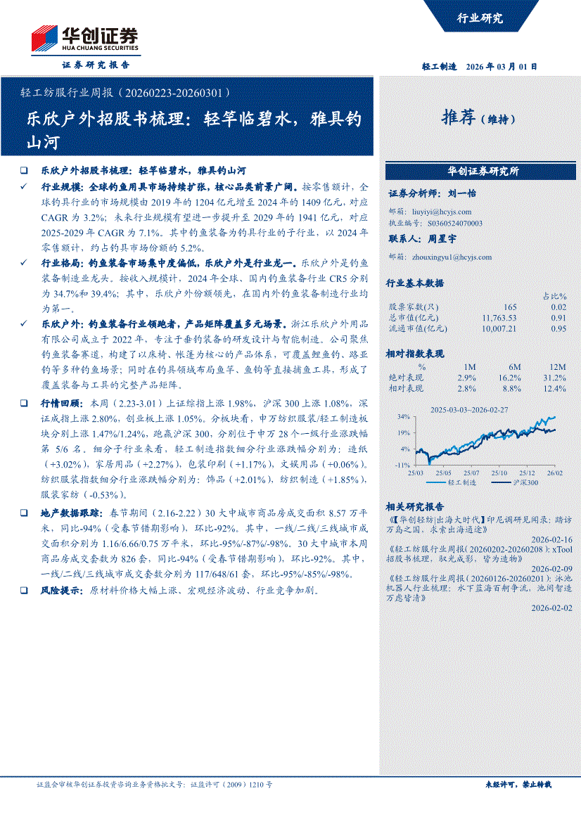 轻工纺服行业:华创证券-轻工纺服行业周报:乐欣户外招股书梳理,轻竿临碧水,雅具钓山河-260301