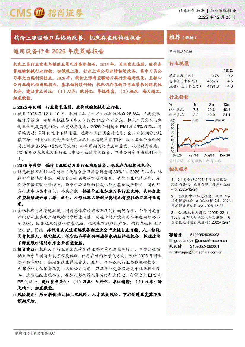 通用设备行业:招商证券-通用设备行业2026年度策略报告:钨价上涨驱动刀具格局改善,机床存在结构性机会-251225