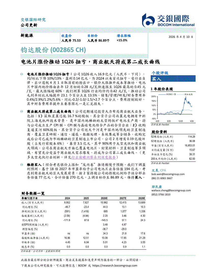 交银国际-钧达股份-002865-电池片涨价推动1Q26扭亏,商业航天将成第二成长曲线-260410