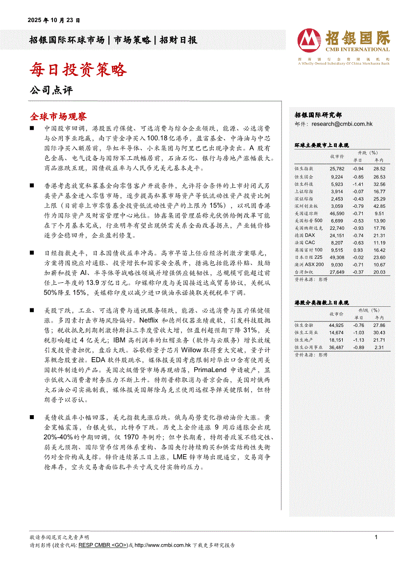 招银国际-招财日报:每日投资策略-251023