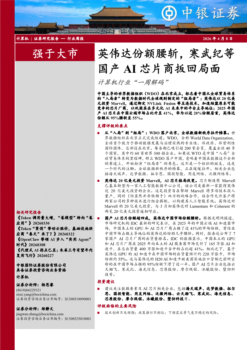 计算机行业:中银国际-计算机行业“一周解码”:英伟达份额腰斩,寒武纪等国产AI芯片商扳回局面-260408