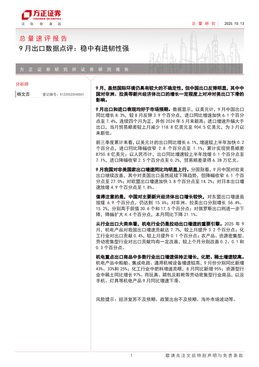 方正证券-9月出口数据点评:稳中有进韧性强-251013