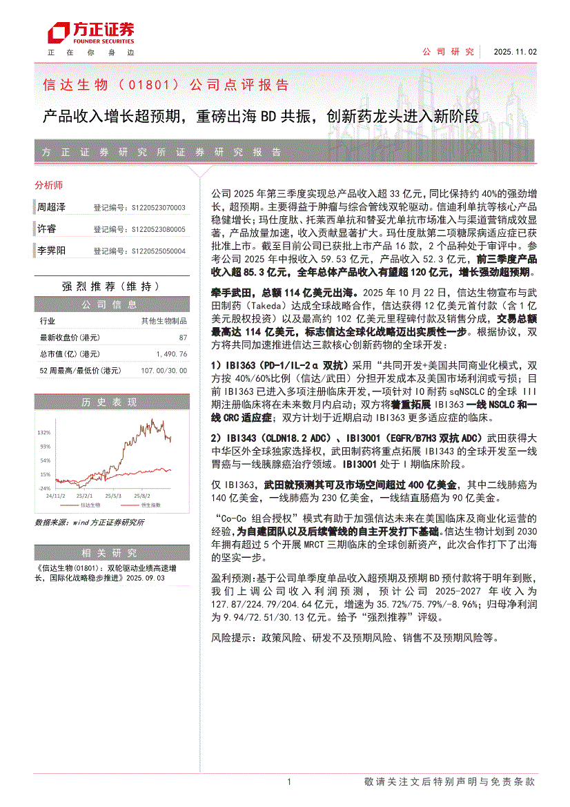 信达生物:方正证券-信达生物-1801.HK-公司点评报告:产品收入增长超预期,重磅出海BD共振,创新药龙头进入新阶段-251102