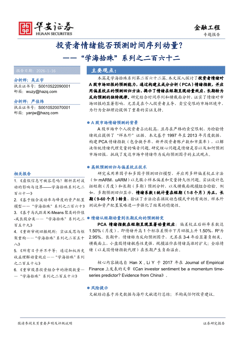华安证券-“学海拾珠”系列之二百六十二:投资者情绪能否预测时间序列动量?-260116
