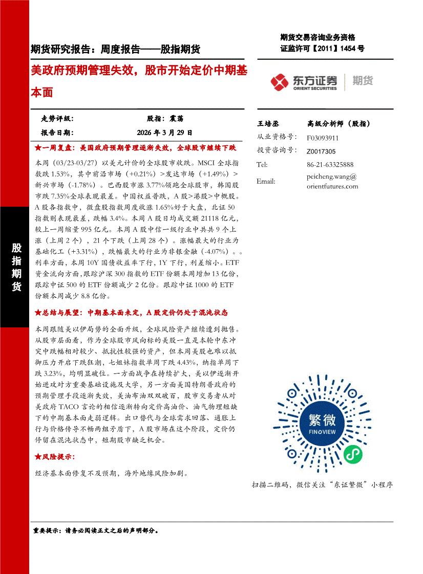 东证期货-周度报告——股指期货:美政府预期管理失效,股市开始定价中期基本面-260329