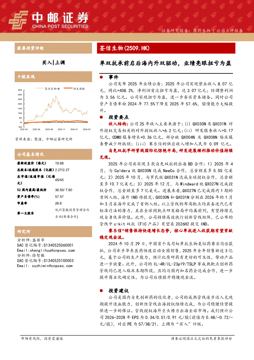 荃信生物:中邮证券-荃信生物-2509.HK-单双抗承前启后海内外双驱动,业绩亮眼扭亏为盈-260403