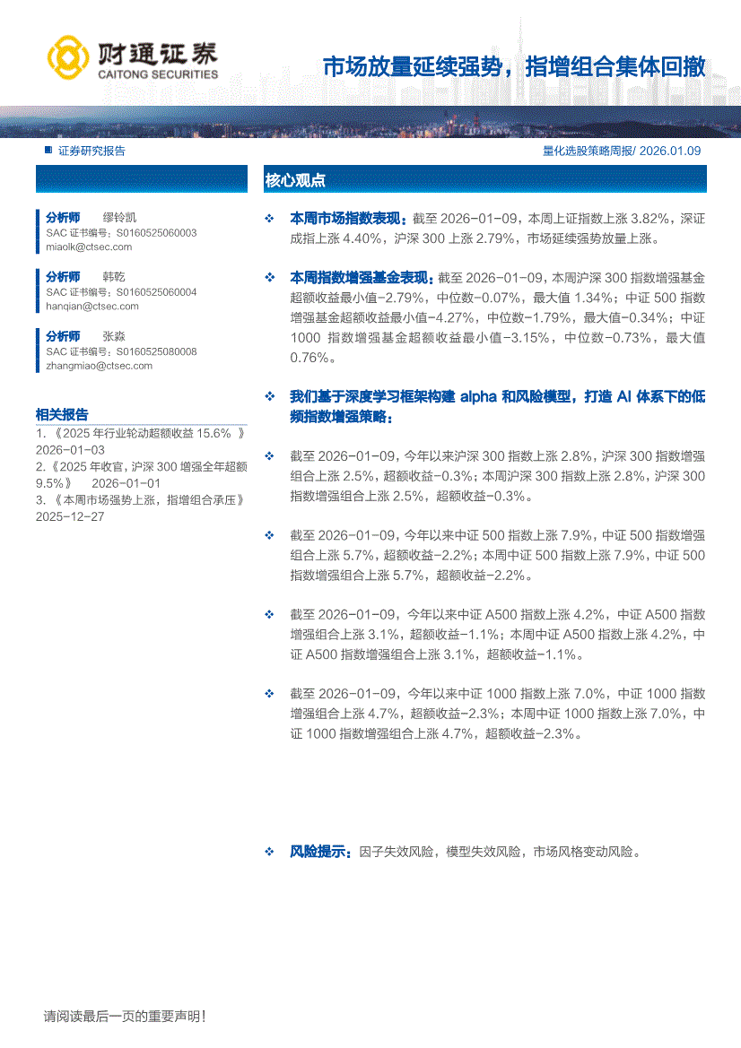 财通证券-量化选股策略周报:市场放量延续强势,指增组合集体回撤-260109