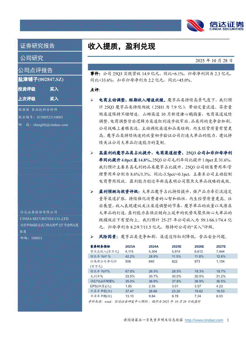 盐津铺子:信达证券-盐津铺子-002847-收入提质,盈利兑现-251028