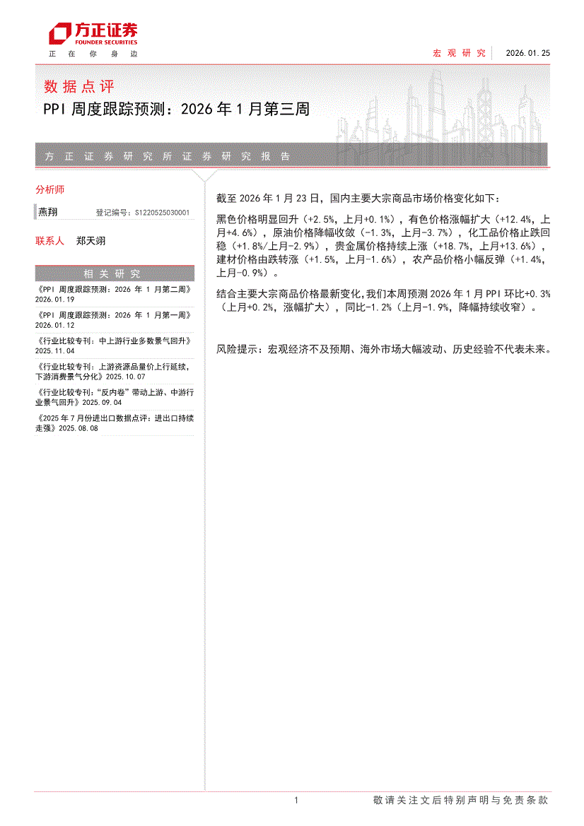 方正证券-PPI周度跟踪预测:2026年1月第三周-260125