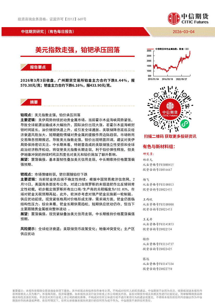 中信期货-有色每日报告:美元指数走强,铂钯价格承压回落-260304