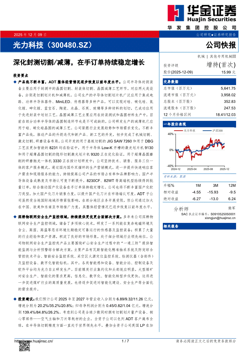 光力科技:华金证券-光力科技-300480-深化封测切割/减薄,在手订单持续稳定增长-251209