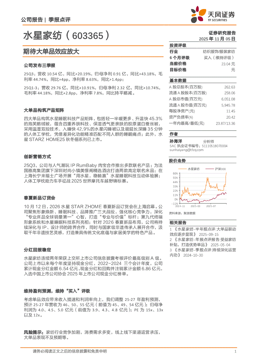 水星家纺:天风证券-水星家纺-603365-期待大单品效应放大-251105