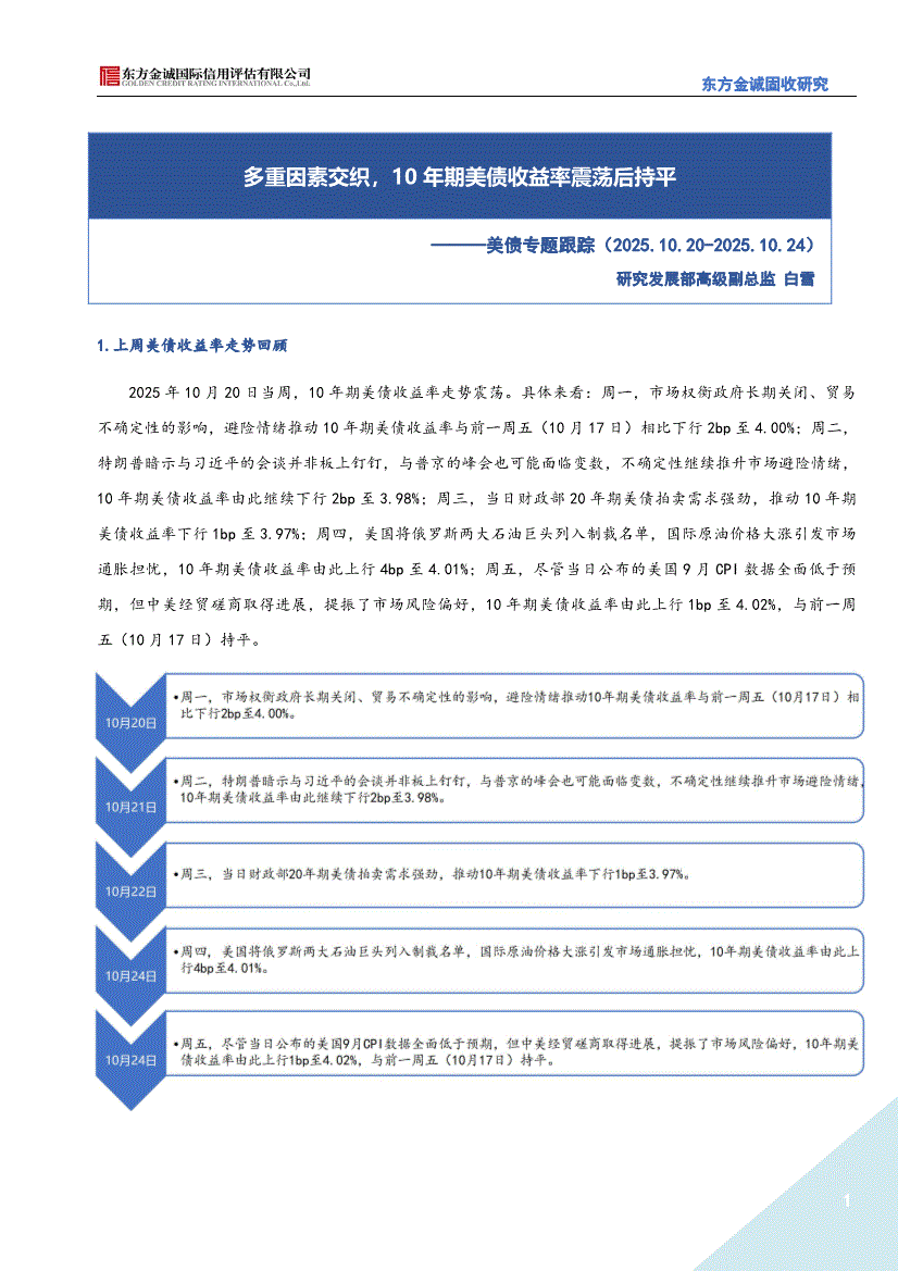 东方金诚-美债专题跟踪:多重因素交织,10年期美债收益率震荡后持平-251024