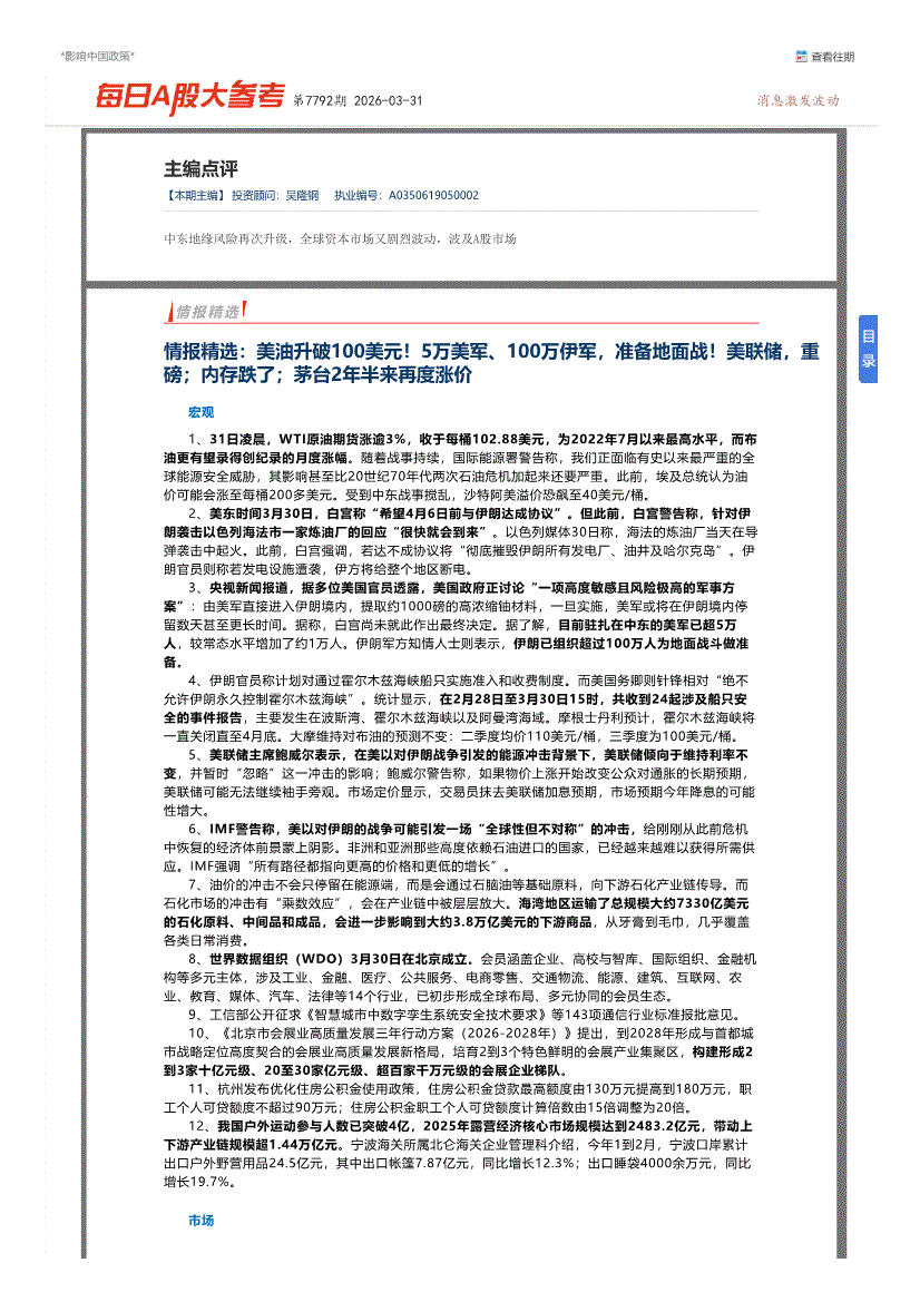 博览财经-每日A股大参考第7792期-260331