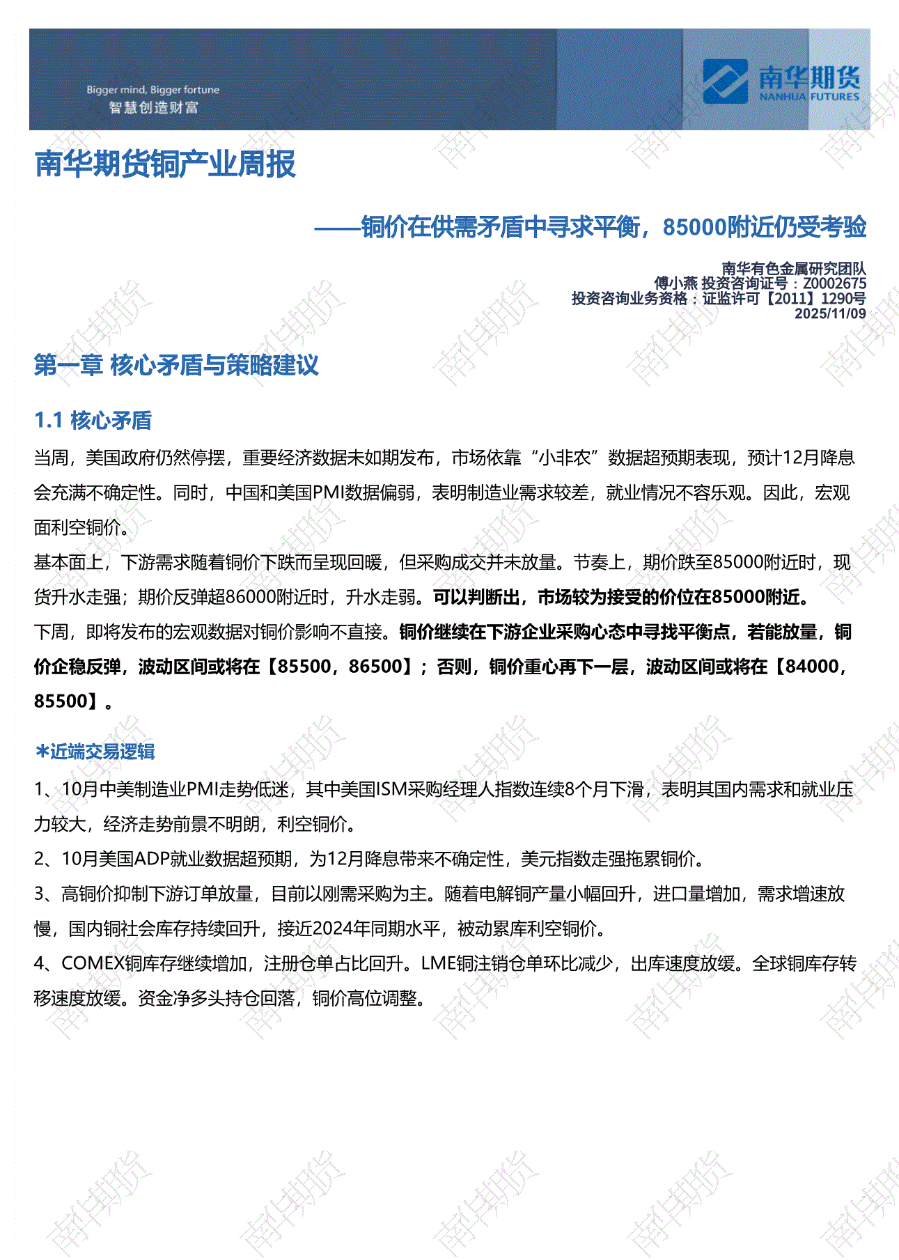 南华期货-铜产业周报:铜价在供需矛盾中寻求平衡,85000附近仍受考验-251109