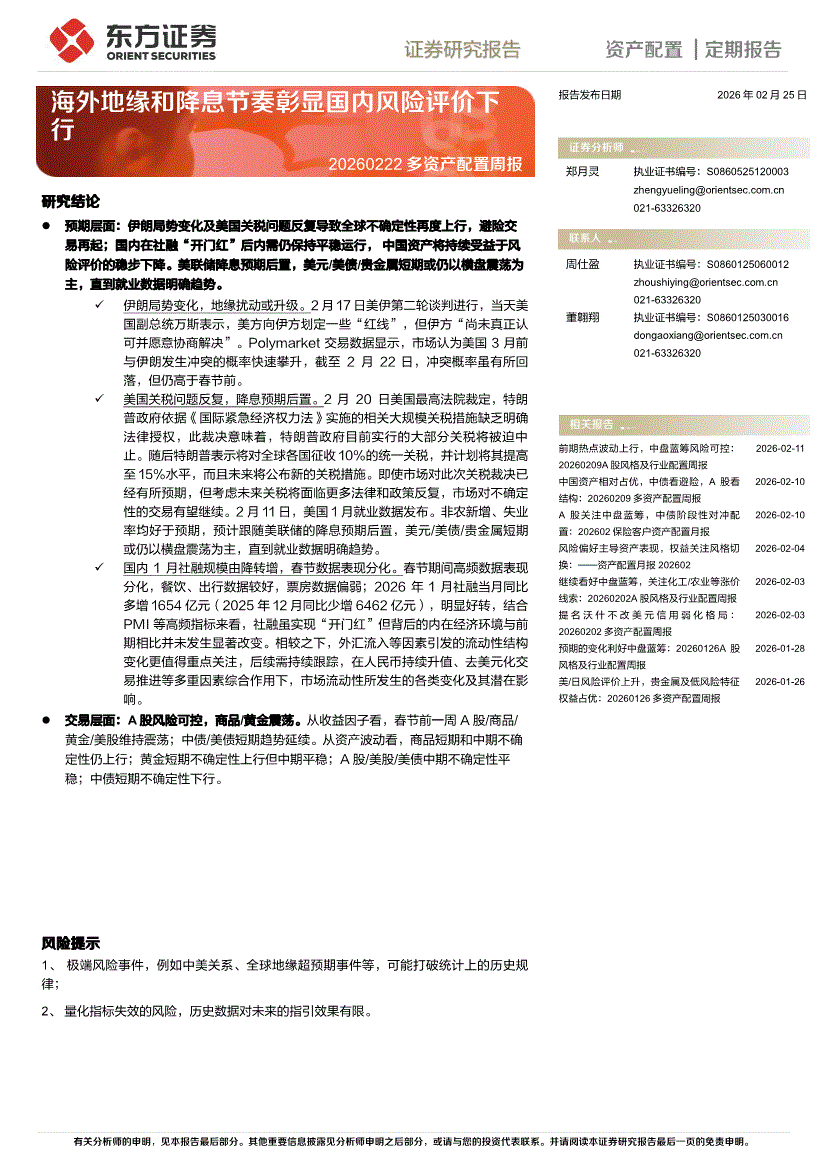 东方证券-多资产配置周报:海外地缘和降息节奏彰显国内风险评价下行-260225
