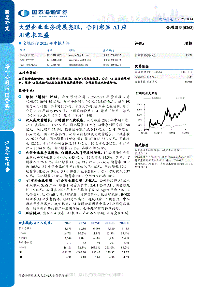 金蝶国际:国泰海通证券-金蝶国际-0268.HK-2025年中报点评:大型企业业务进展亮眼,合同彰显AI应用需求旺盛-250814