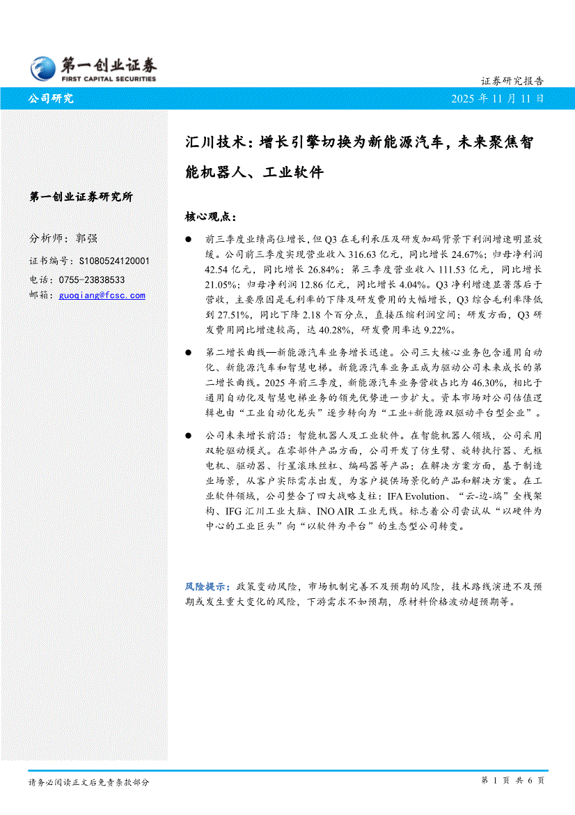 汇川技术:第一创业-汇川技术-300124-增长引擎切换为新能源汽车,未来聚焦智能机器人、工业软件-251111