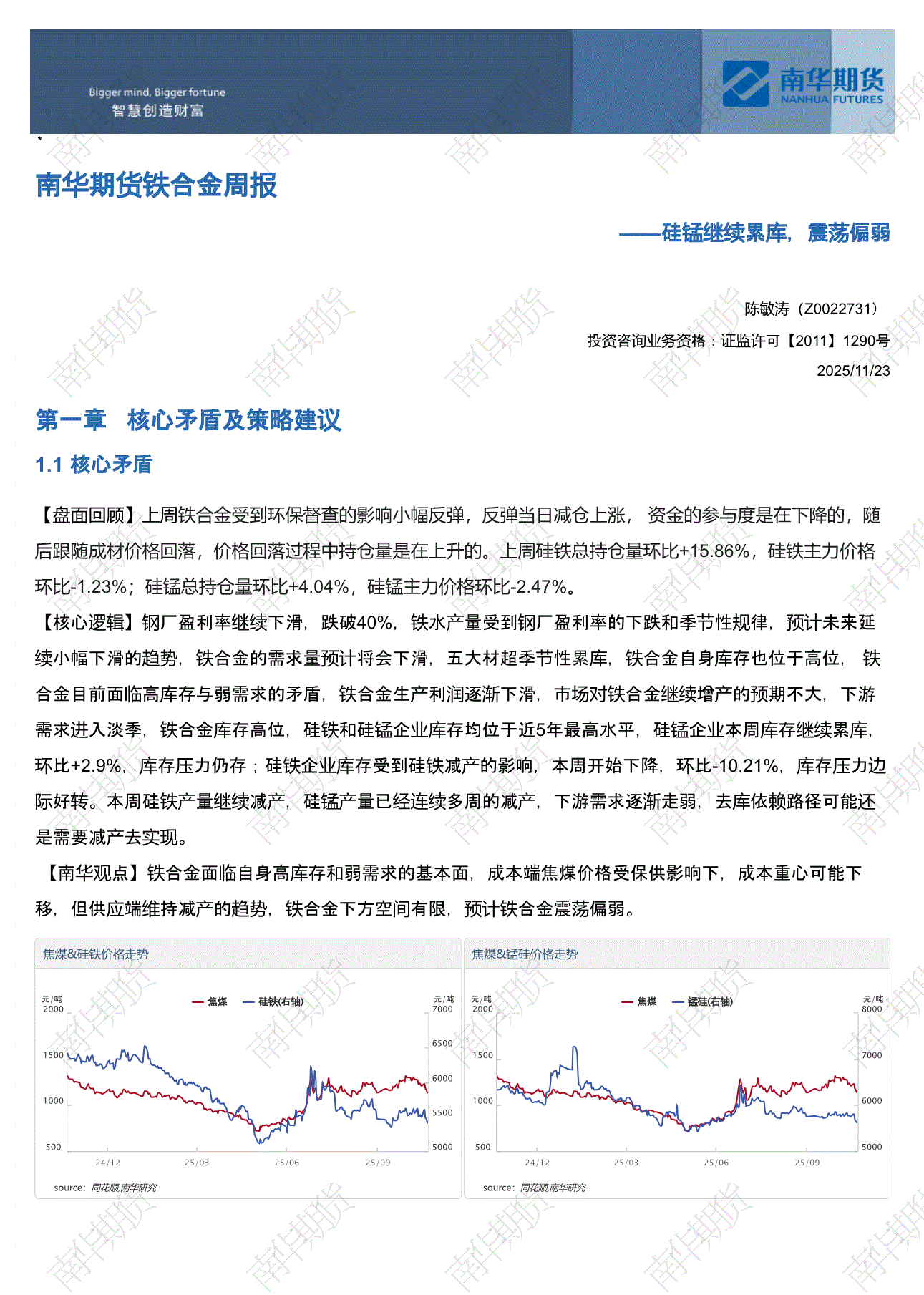 南华期货-铁合金周报:硅锰继续累库,震荡偏弱-251123