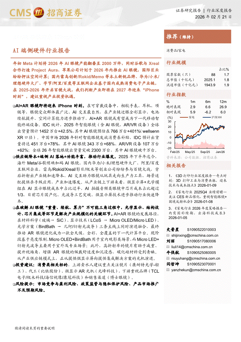 家电行业:招商证券-家电行业AI端侧硬件行业报告:AI+AR眼镜迎来iPhone时刻-260221