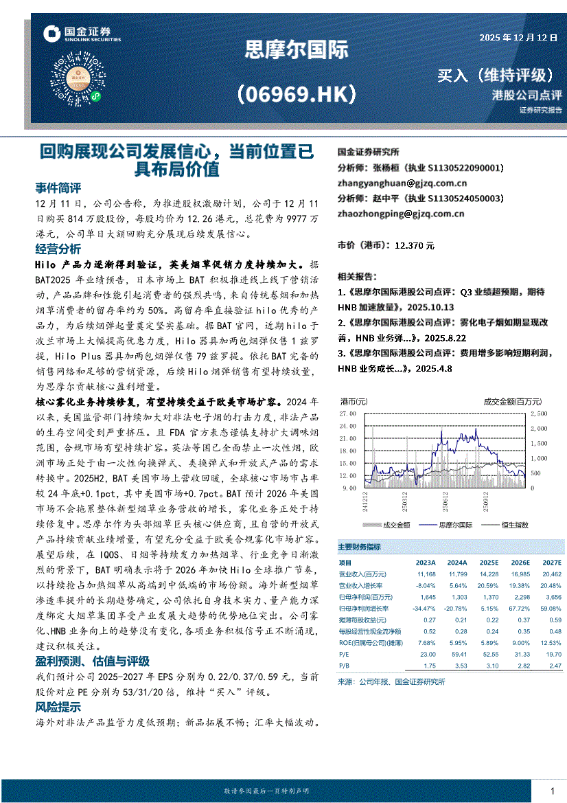 思摩尔国际:国金证券-思摩尔国际-6969.HK-回购展现公司发展信心,当前位置已具布局价值-251212