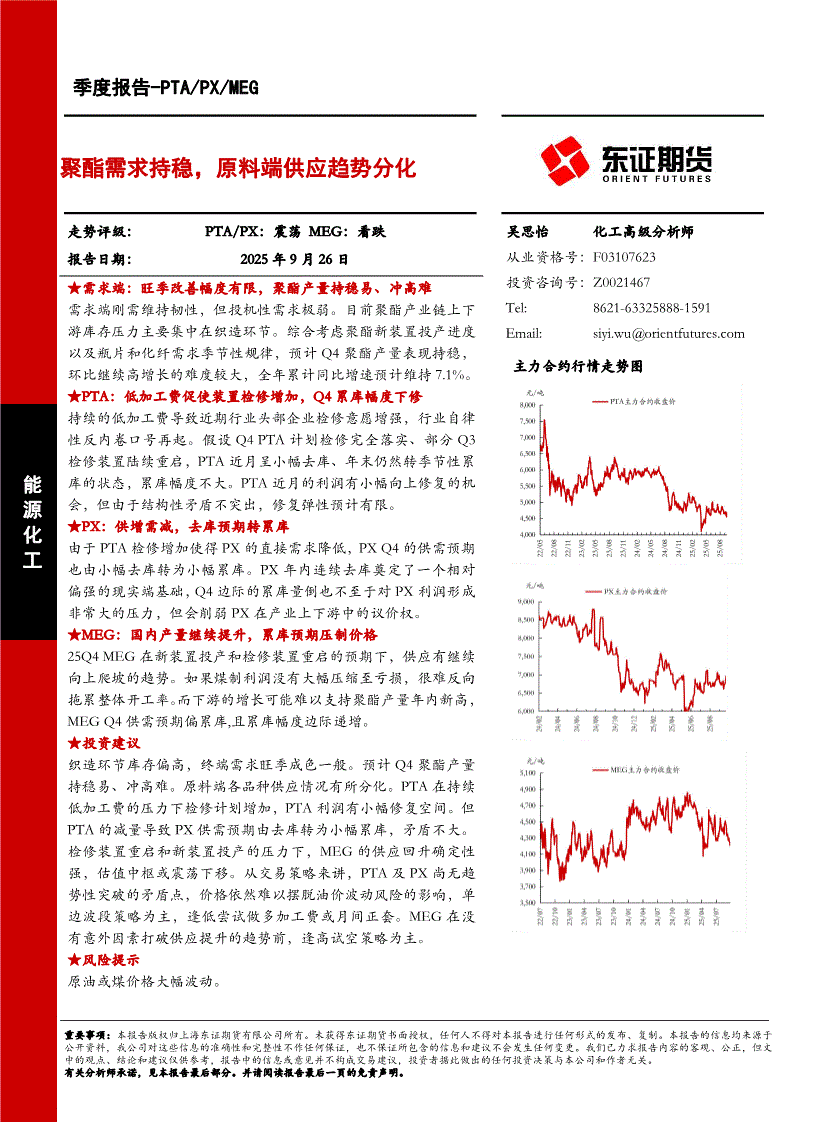 东证期货-PTA/PX/MEG季度报告:聚酯需求持稳,原料端供应趋势分化-250926