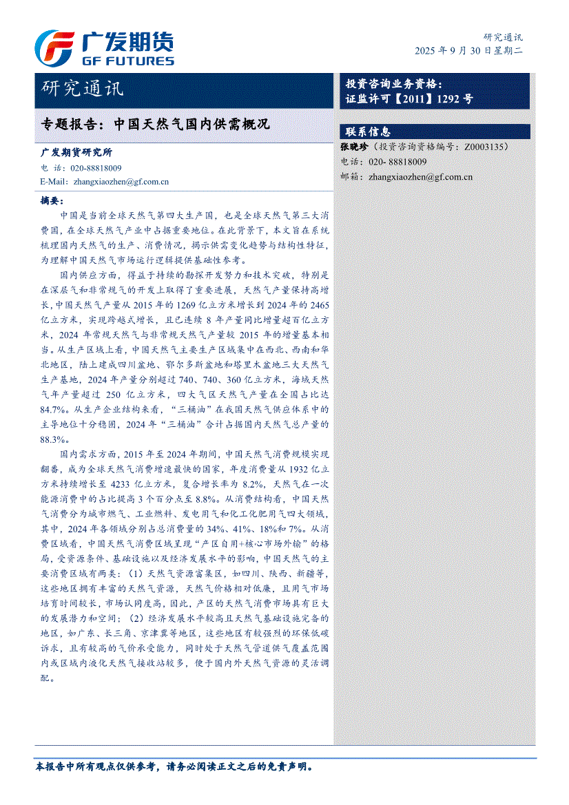 广发期货-专题报告:中国天然气国内供需概况-250930