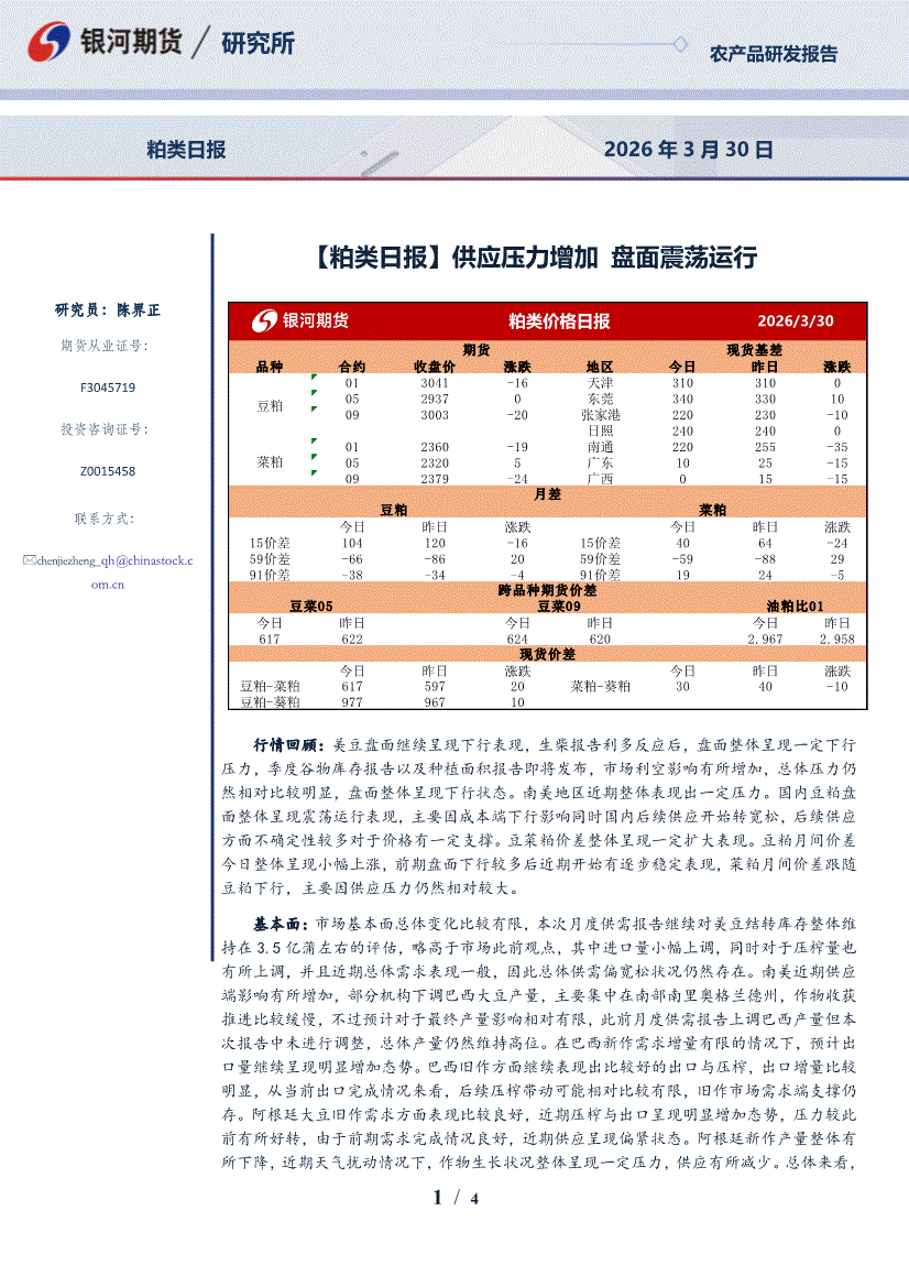 银河期货-【粕类日报】供应压力增加,盘面震荡运行-260330