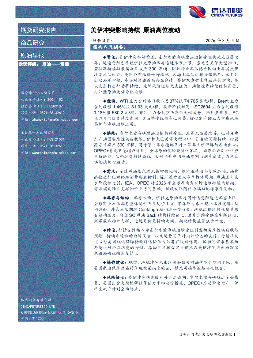 信达期货-原油早报:美伊冲突影响持续,原油高位波动-260304