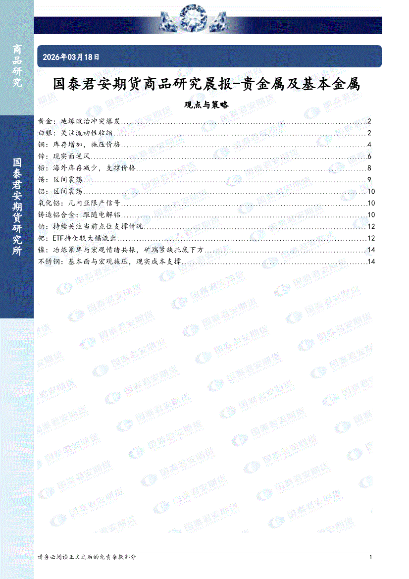 国泰君安期货-商品研究晨报:贵金属及基本金属-260318
