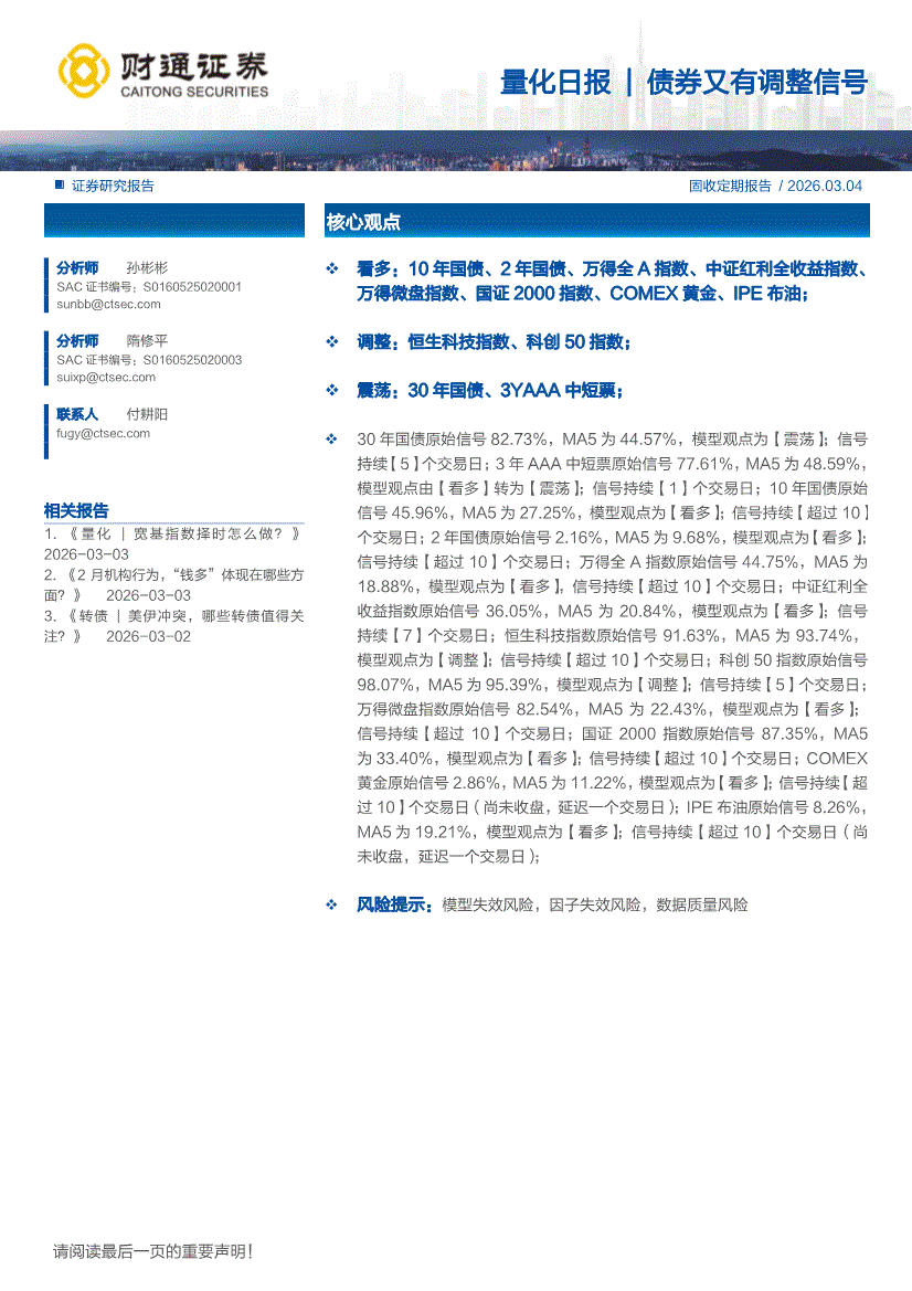 财通证券-量化日报|超长延续震荡,长端保持看多-260306
